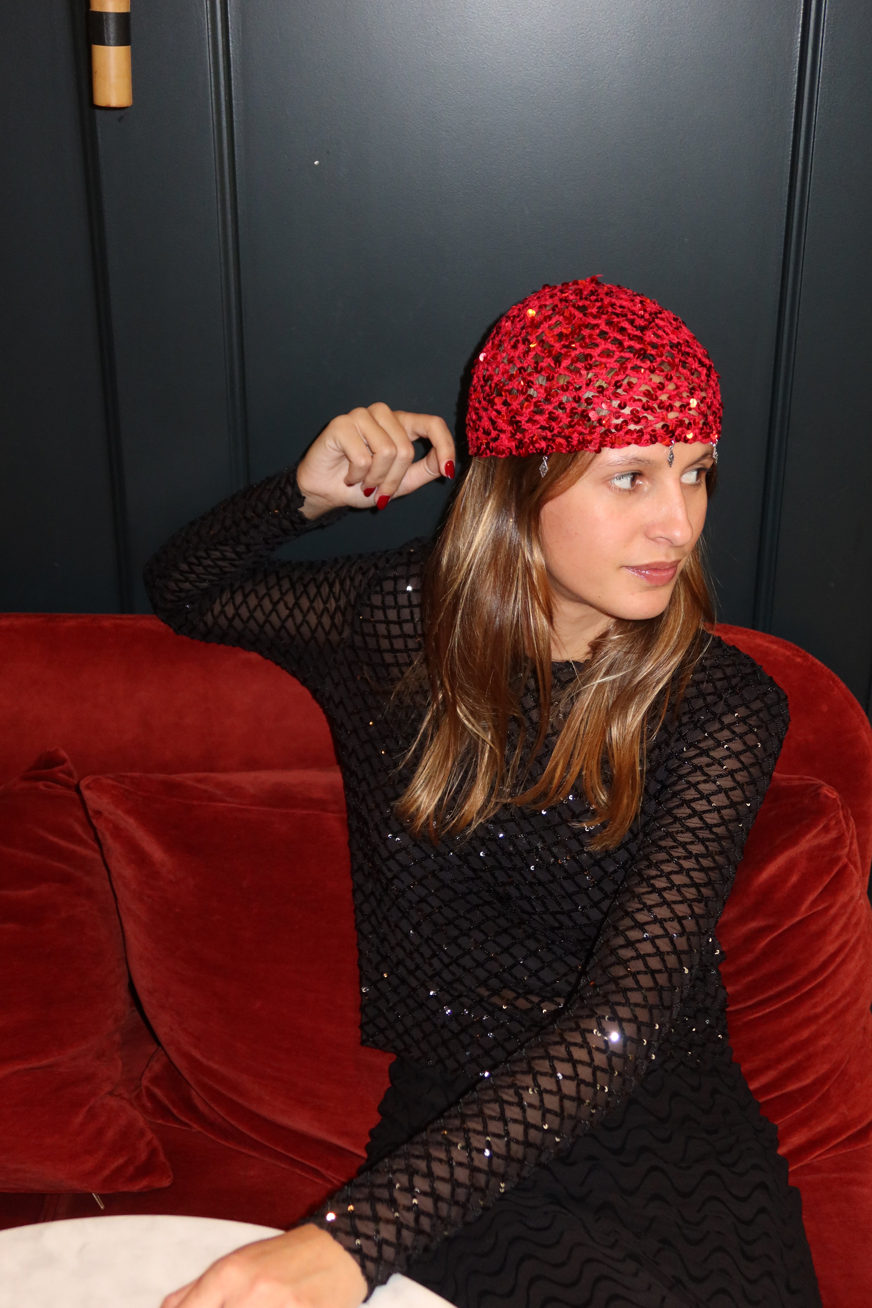 Des pièces sculptées pour le soir : tops pailletés, robes fluides qui accrochent la lumière, transparences subtiles, sequins, velours profonds et coupes qui allongent la silhouette.